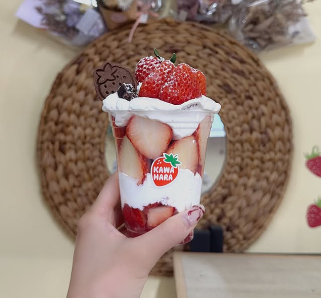 スイーツに使っているイチゴは、完熟イチゴをたっぷり練り込んでおり、後味すっきりなのが特徴。